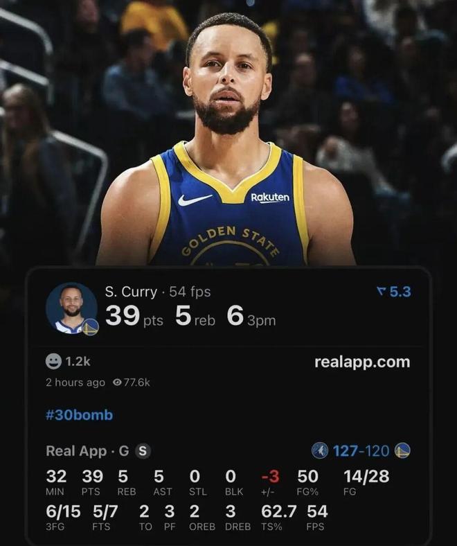 勇士120-127不敌森林狼,库里复出39分,戈贝尔13中11砍24+14